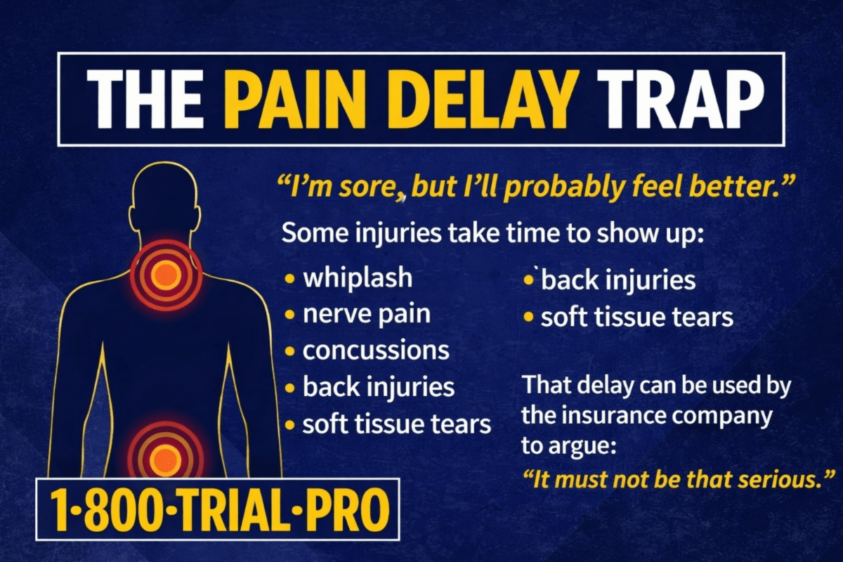 Here’s the truth: many accident injuries don’t fully show up until hours or even days later. Neck pain, back pain, nerve pain, and concussion symptoms often start mild, then build as inflammation increases and soft tissue tightens.